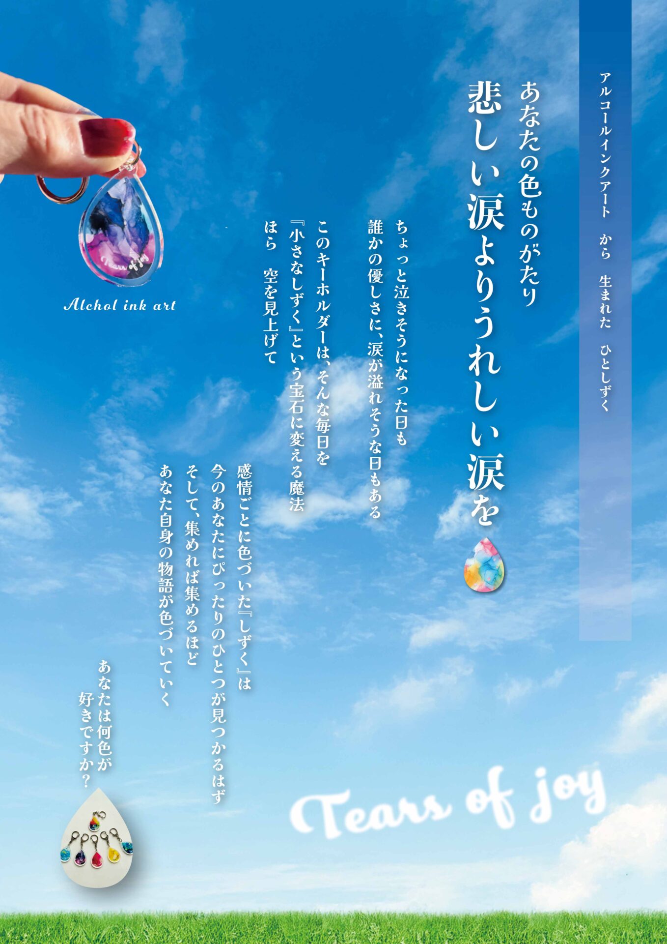 ・✦・ うれし涙 ・✦・ 悲しい涙より嬉しい涙を流してほしい。 そんな想いからできた アクリルキーホルダー tears of joy たくさん流した涙は、 いっぱいの暖かな心が詰まっていて、 優しい気持ちが溢れています […]